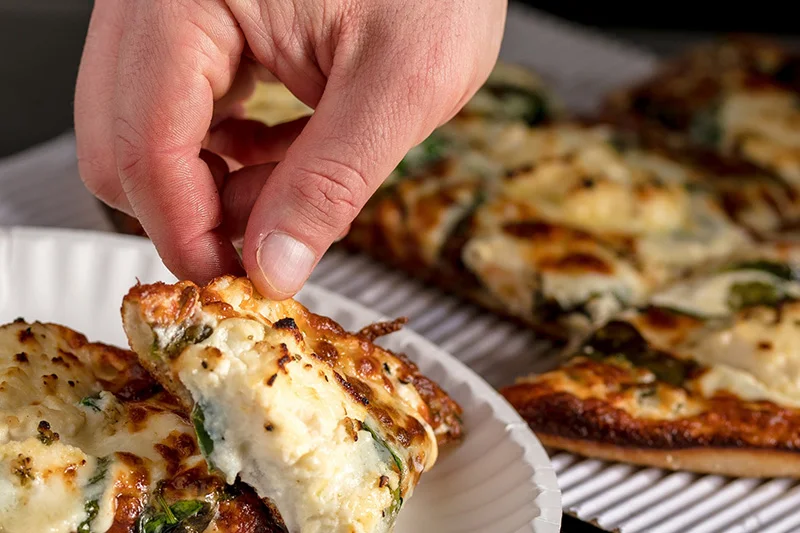 7 cheeses (our signature 5 cheese blend, ricotta, and Party Sauce), spinach